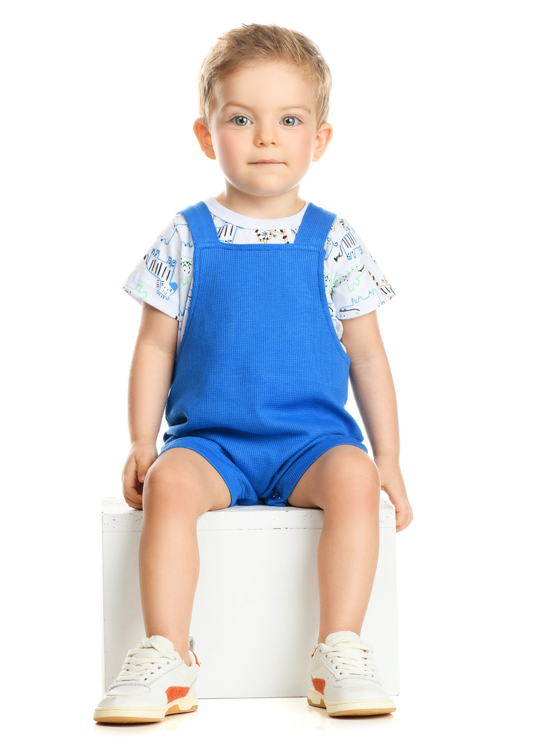 Com patch divertido, botão de pressão e um mix de tecidos leves e confortáveis, esse conjunto aposta no lúdico e moderno. Ideal para lojistas que valorizam a estética e o conforto na moda bebê.