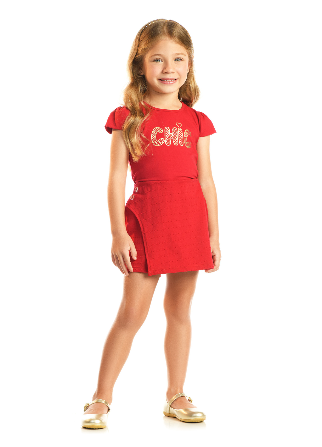 O conjunto em cotton/cotton magnetado para meninas une conforto e um visual encantador. O shorts saia traz leveza e liberdade nos movimentos, enquanto os botões de margaridas adicionam um detalhe doce e cheio de personalidade.