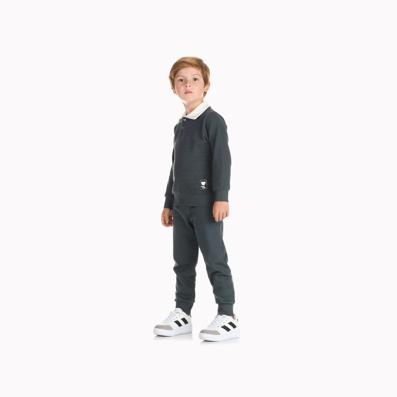 Conjunto em gorgurão e moletom, com gola em suedine e botão de madeira. Conforto, estilo e ótimo caimento para o dia a dia.
