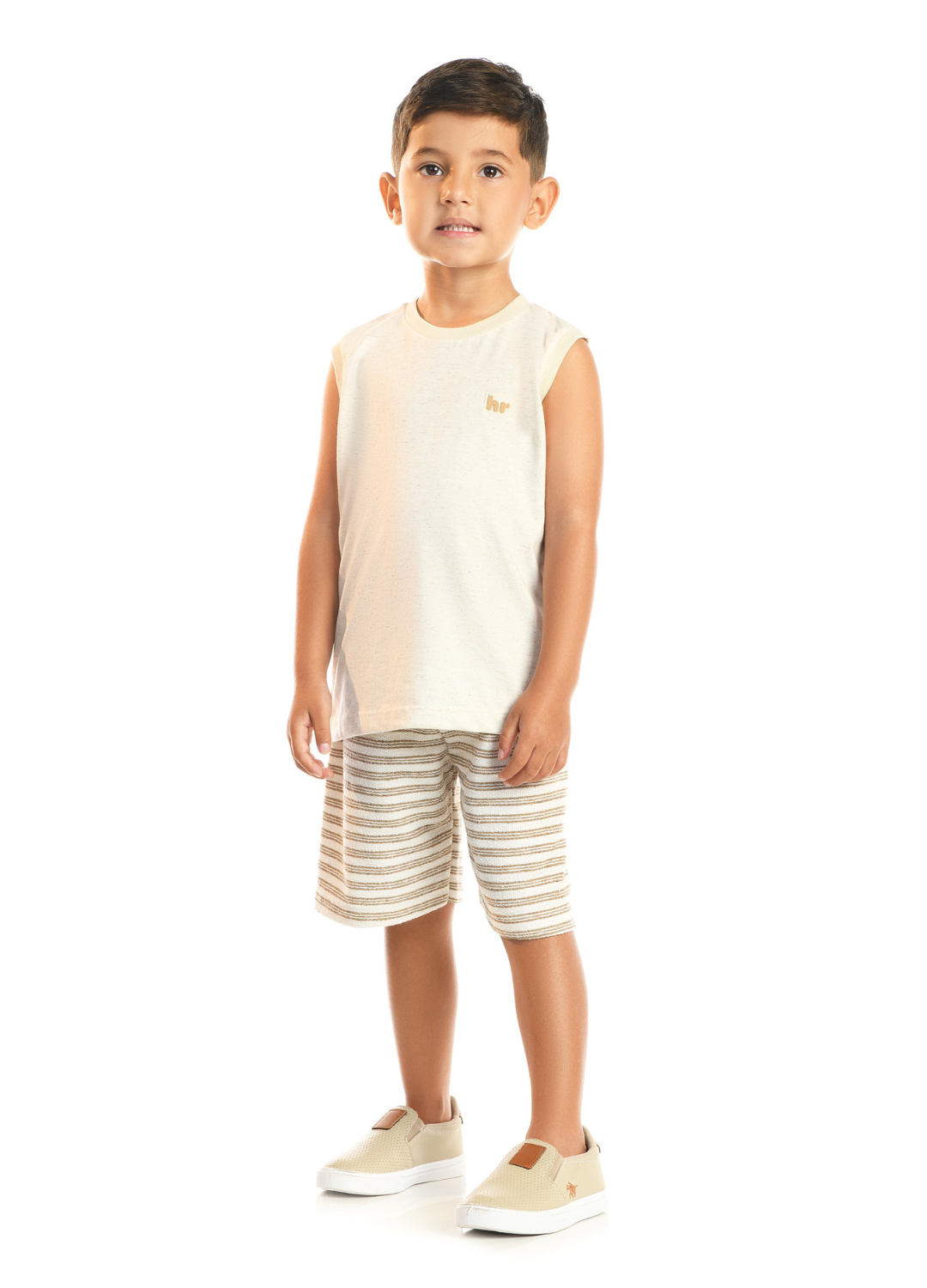 O conjunto em meia malha linho com moletinho listrado traz equilíbrio entre conforto e estilo. As listras adicionam movimento ao look, enquanto a base macia garante bem-estar ao longo do dia.
