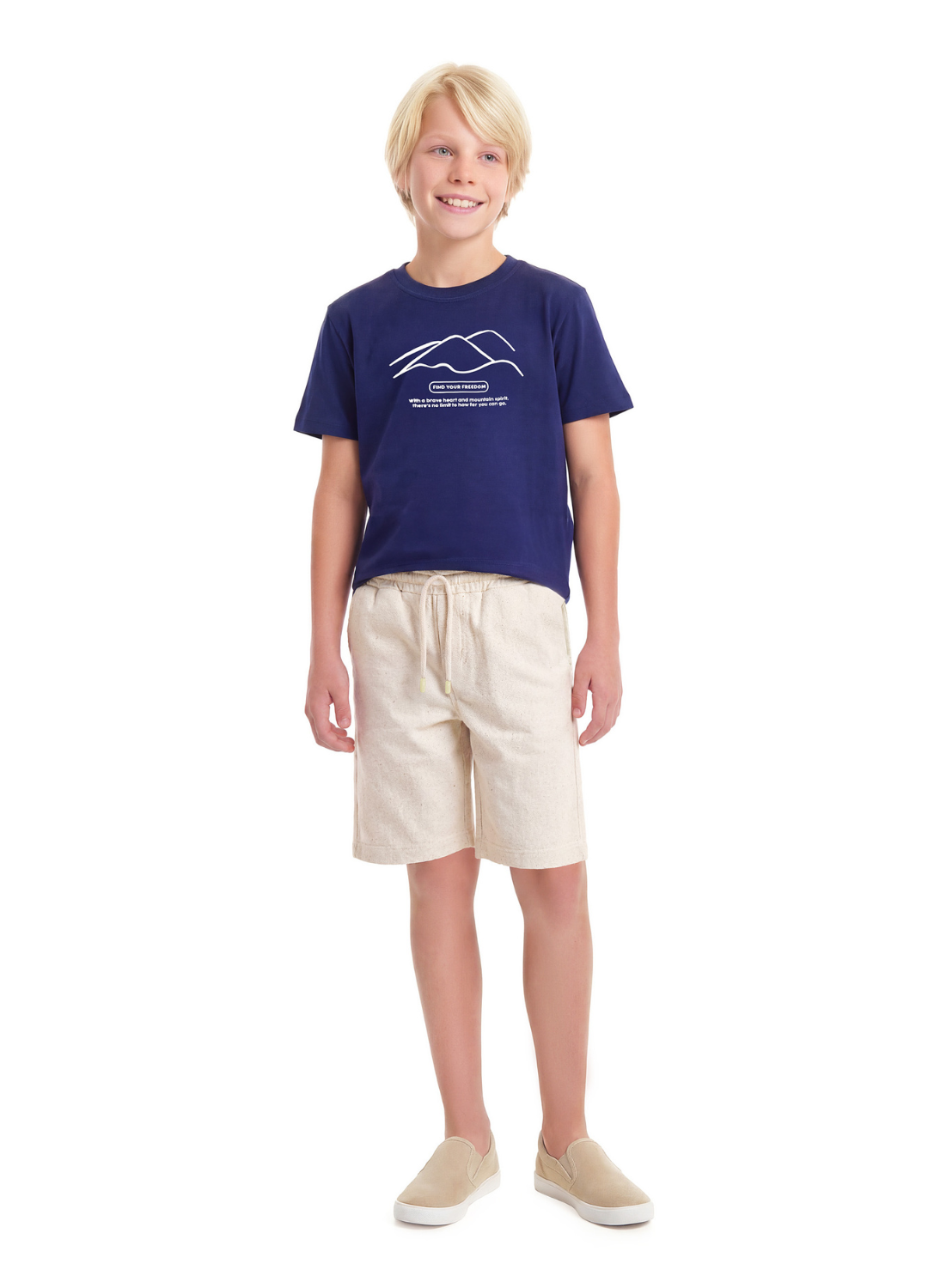 O conjunto em meia malha com moletinho linho para meninos traz um visual moderno e equilibrado, combinando conforto e estilo na medida certa. O shorts com cadarço reforça a proposta prática e deixa a peça ainda mais versátil.