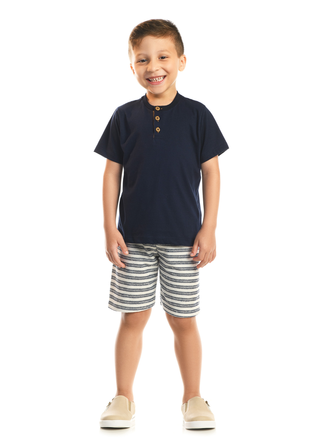 O conjunto em meia malha com moletinho listrado traz um estilo moderno e cheio de personalidade. O botão de madeira entra como detalhe especial, deixando a peça ainda mais charmosa.