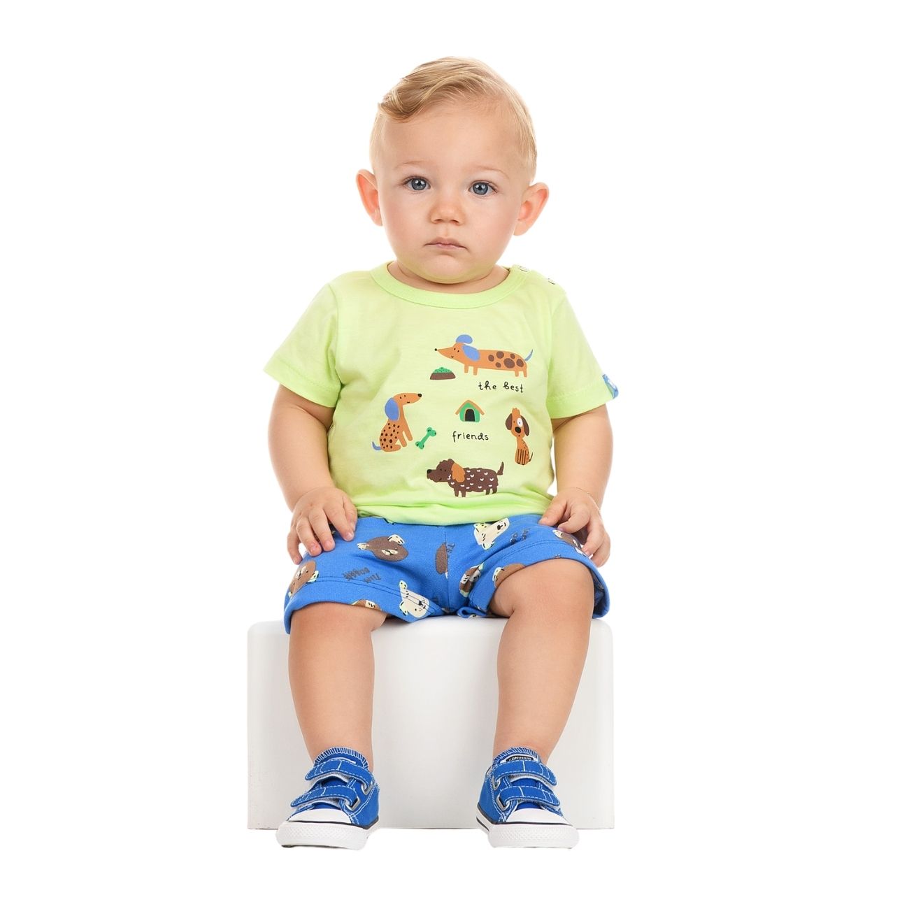 Praticidade e estilo em dose dupla! O conjunto vem com blusa e bermuda estampadas, cheias de fofura, além de botão de pressão que facilita na hora de vestir. Uma opção confortável e charmosa para acompanhar cada descoberta do bebê.