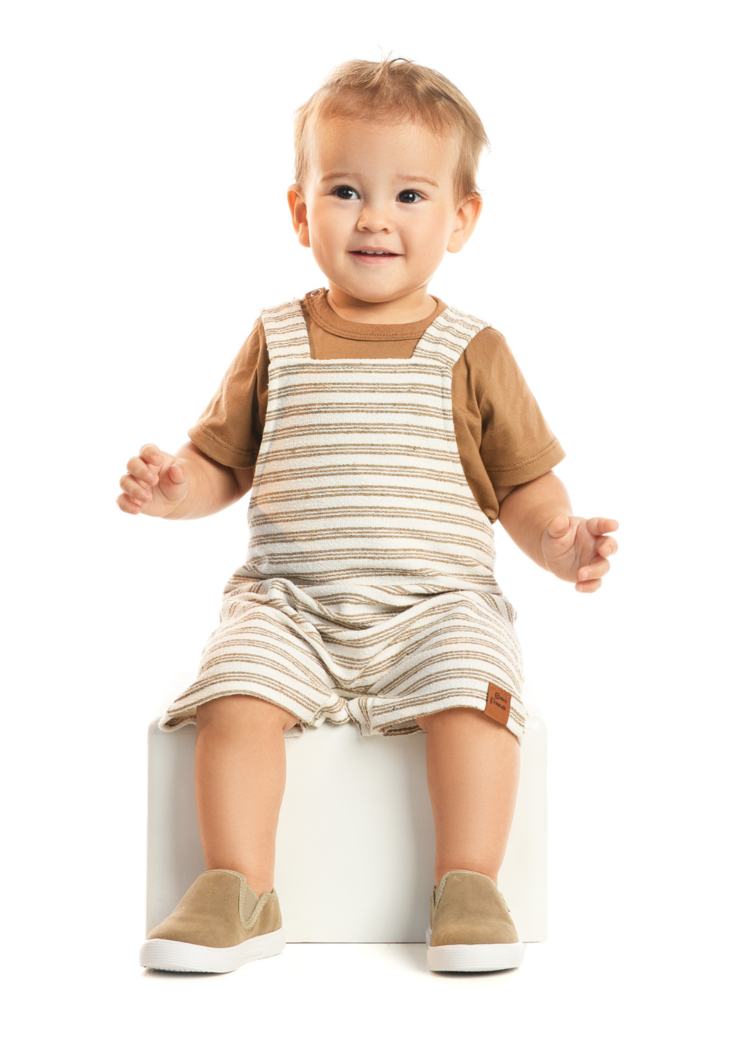 O conjunto em moletinho listrado com meia malha para bebês combina o visual atemporal das listras com o conforto que faz diferença no dia a dia. Leve, versátil e fácil de combinar.