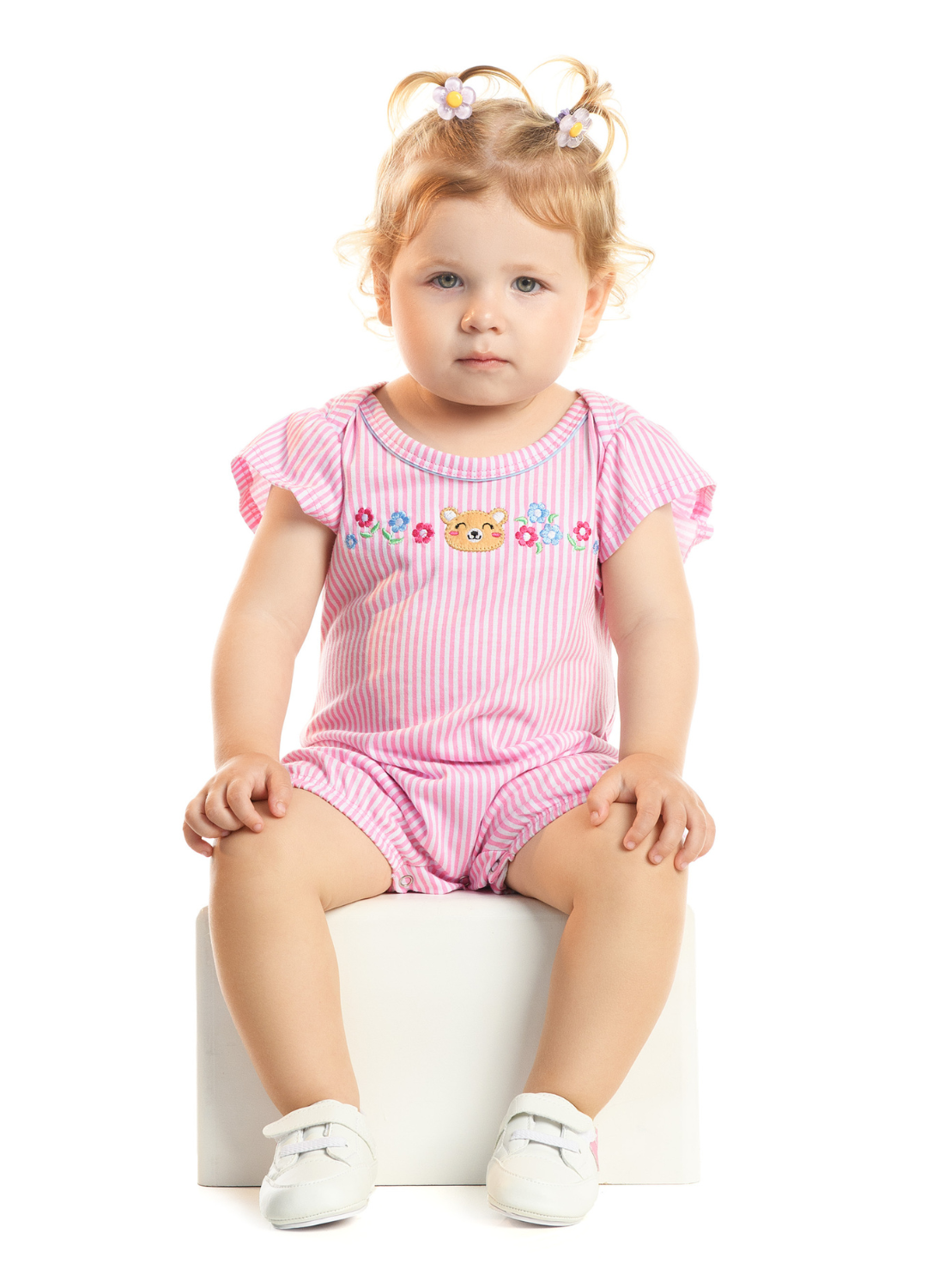 O macaquinho em meia malha rotativa combina conforto no toque com um visual delicado e bem-acabado. O bordado traz charme extra à peça, enquanto o botão de pressão facilita a rotina e agrega praticidade para os pais.